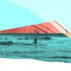 The tram lines embedded in concrete take us in fixed direction to an inevitable destination. What does it take to make a change and swim in the blue oceans and find freedom? This piece brings the city to the coast in a new condensed landscape exploring how close we are to another way of being.