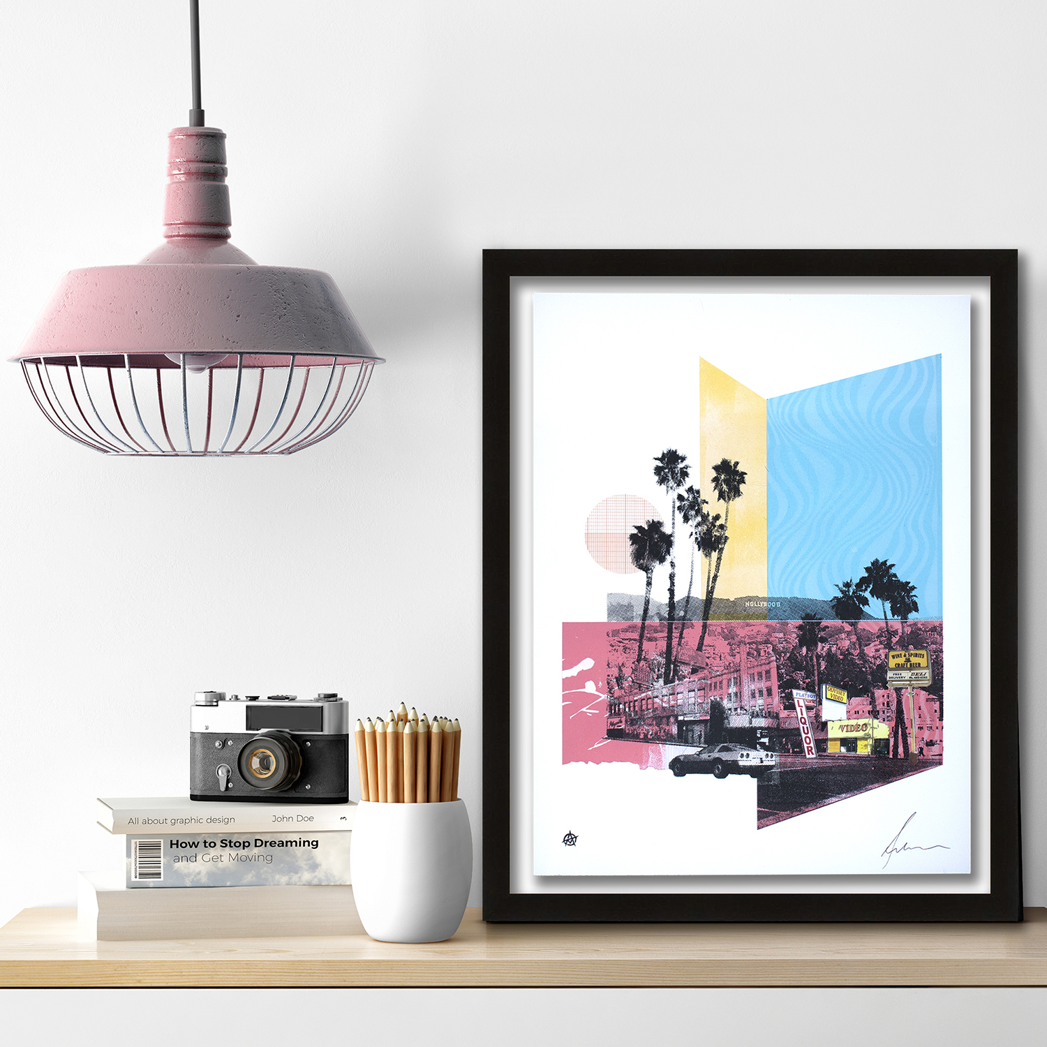 I took a lot of photos walking in and around Hollywood a few years ago, giving me a lot of source material. The bright colours reflect the vibrancy and energy of this busy area of LA.