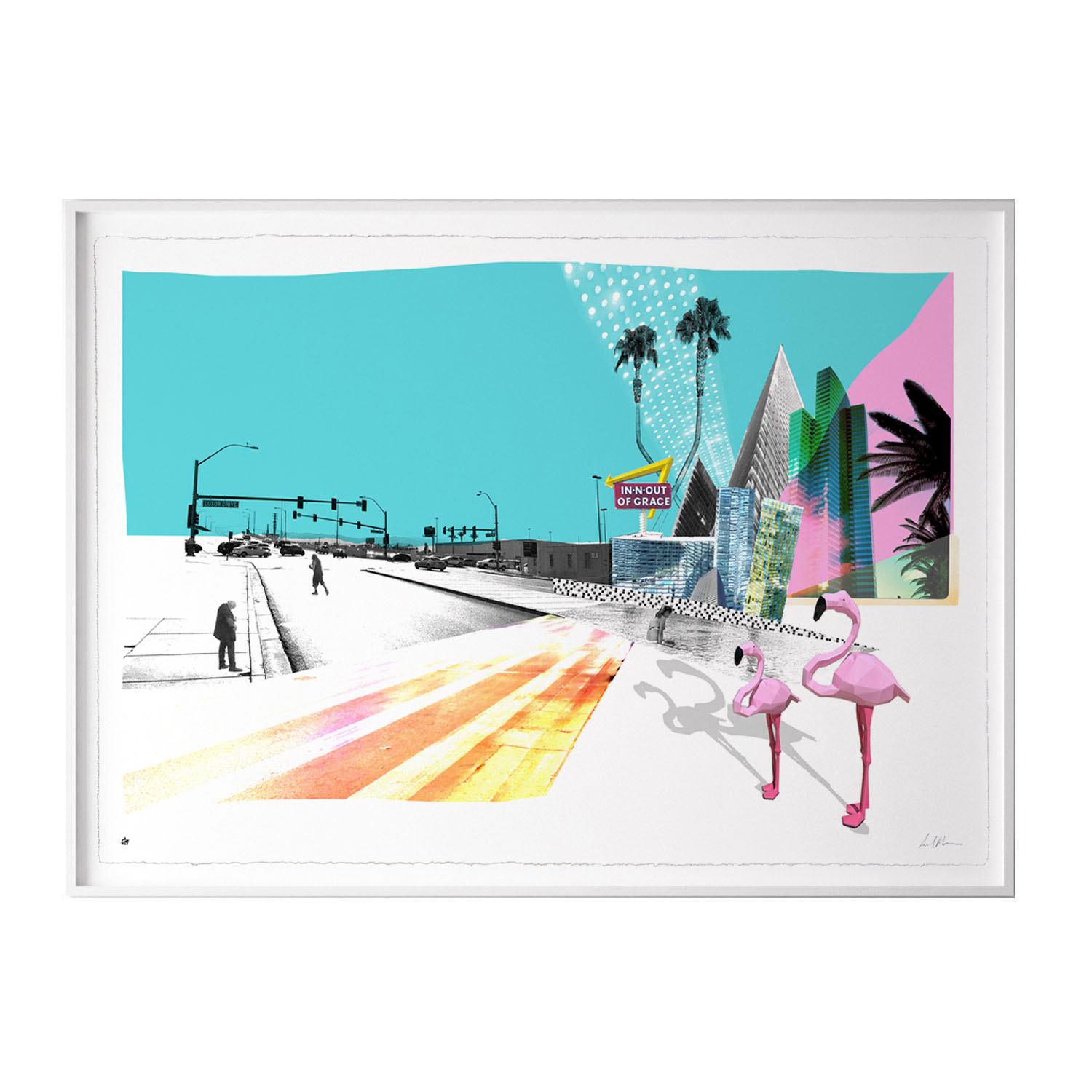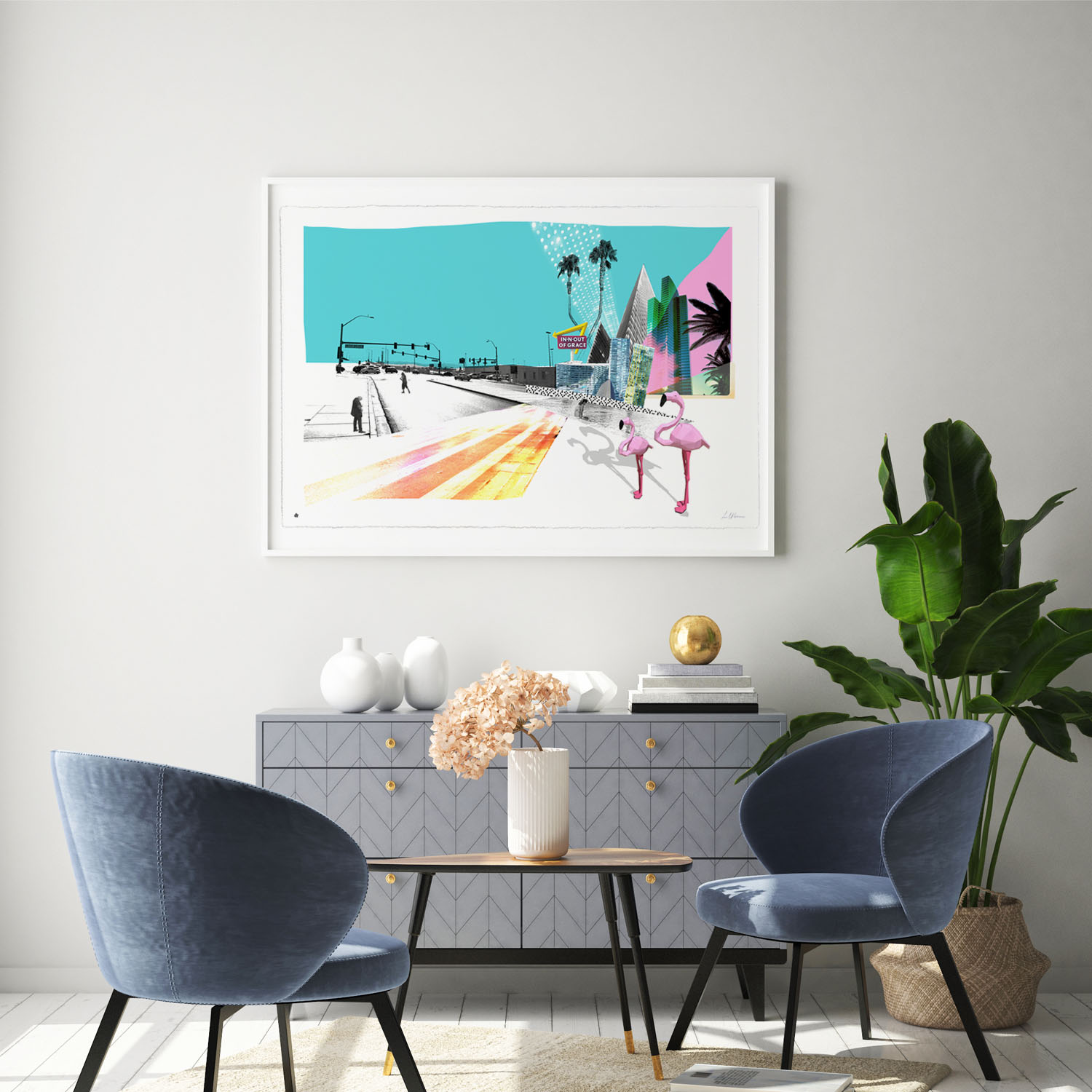 This artwork features my own original photography, with elements printed and re-scanned in to create a take its place in a mixed media collage. Each limited edition, hand-finished print is produced using giclée printing, screen printing, acrylic paint and glazes.